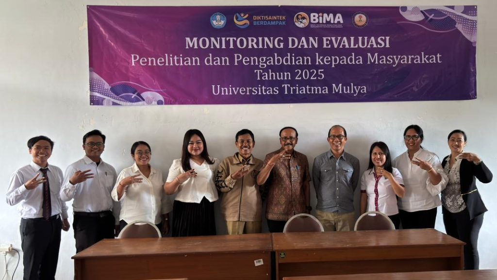 Pada Senin 29 September 2025 Lembaga Penelitian, Publikasi, dan Pengabdian kepada Masyarakat (LPPPM) Universitas Triatma Mulya melaksanakan kegiatan Monitoring dan Evaluasi (Monev) Penelitian dan Pengabdian kepada Masyarakat.