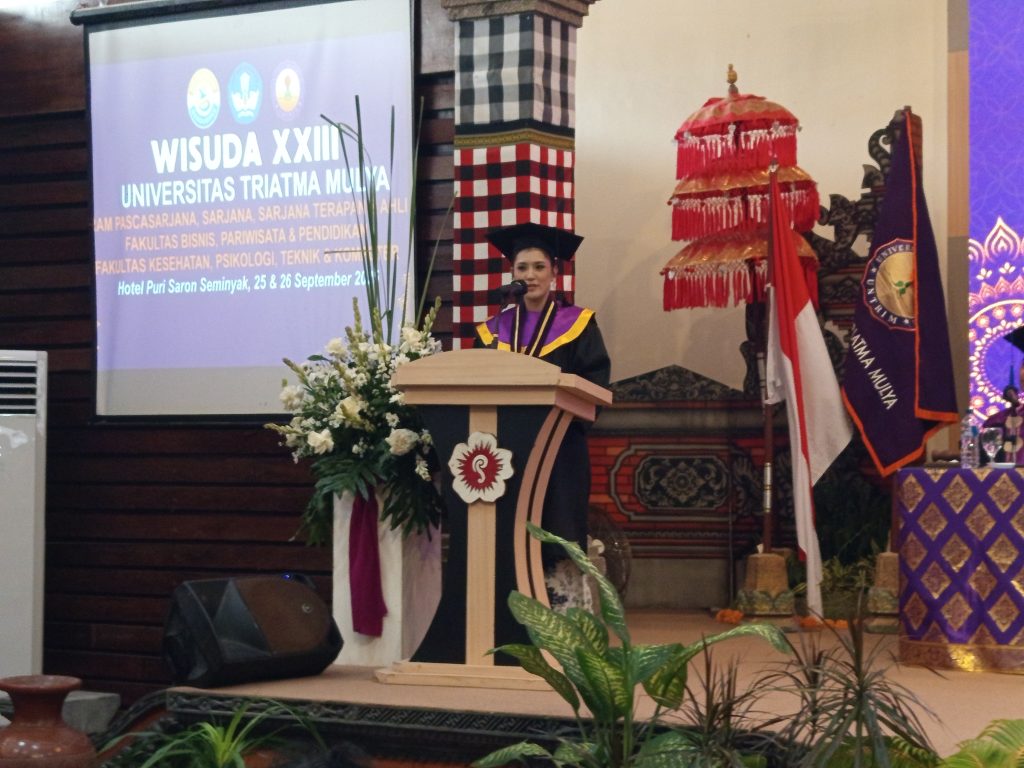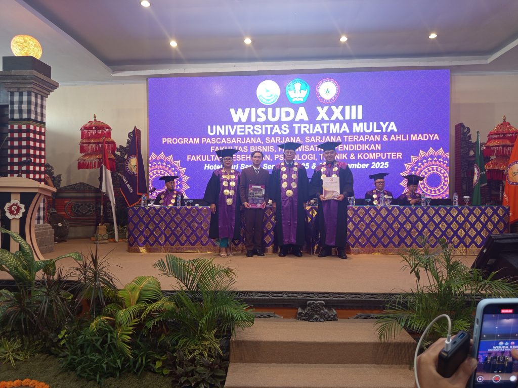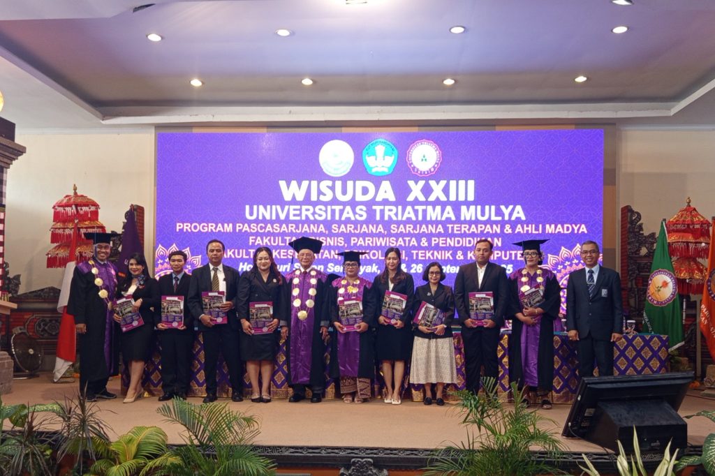 Universitas Triatma Mulya kembali mencetak sejarah dengan menyelenggarakan Wisuda XXIII pada tanggal 25–26 September 2025. Prosesi sakral pengukuhan lulusan ini digelar di Hotel Puri Saron Seminyak dengan penuh khidmat, melibatkan seluruh sivitas akademika, orang tua wisudawan, serta tamu undangan.